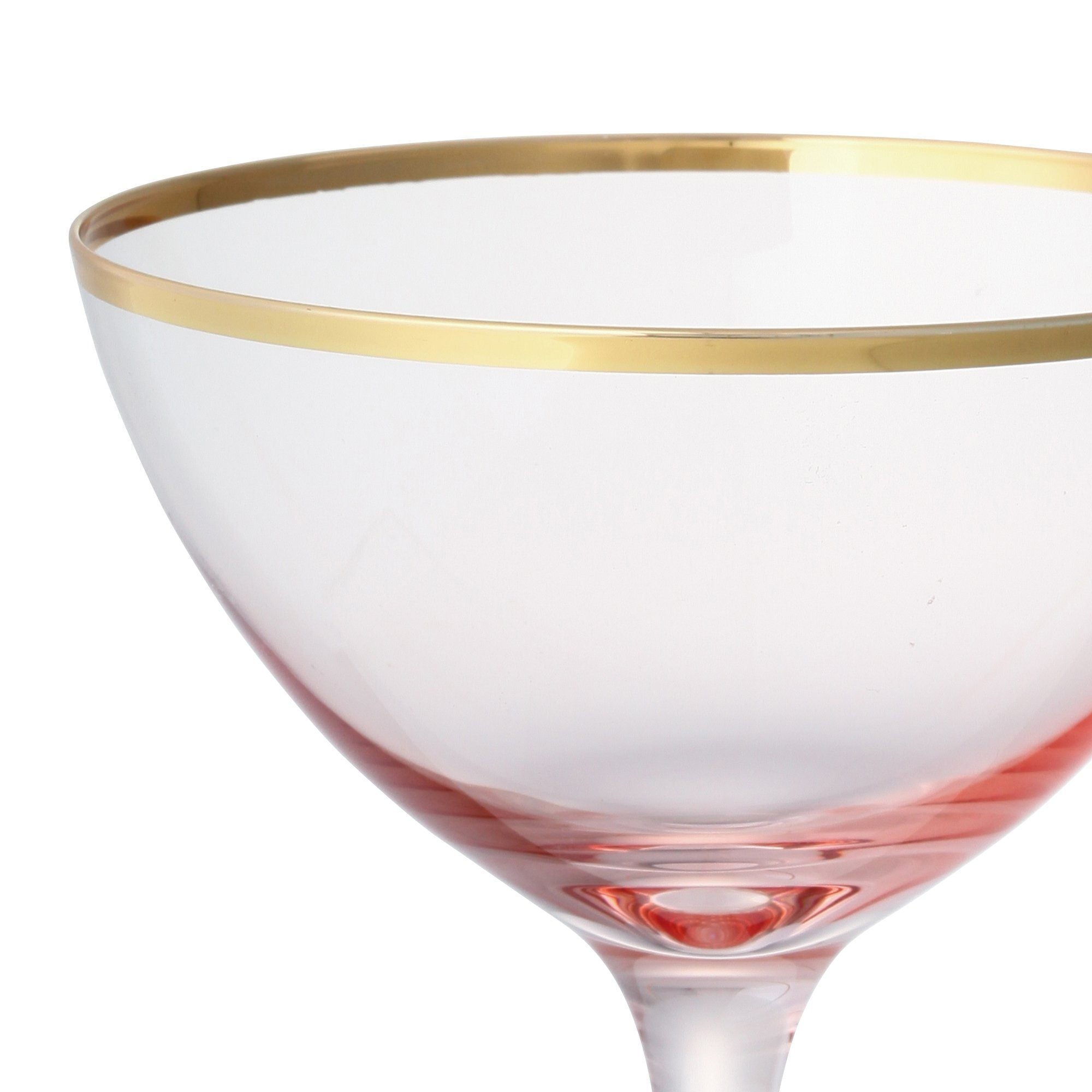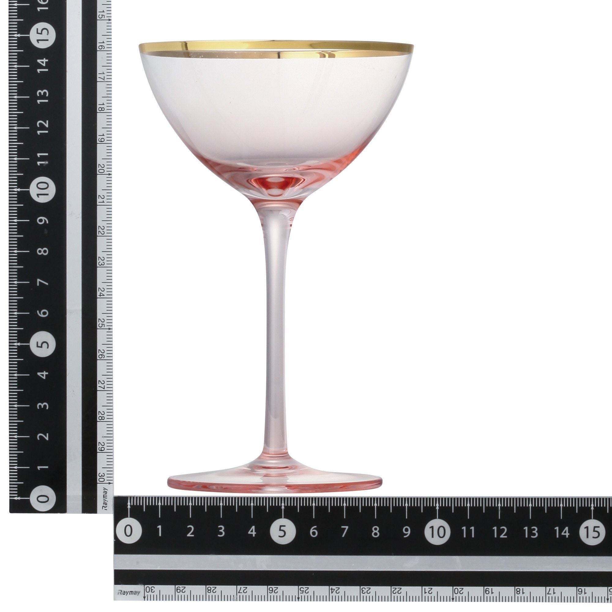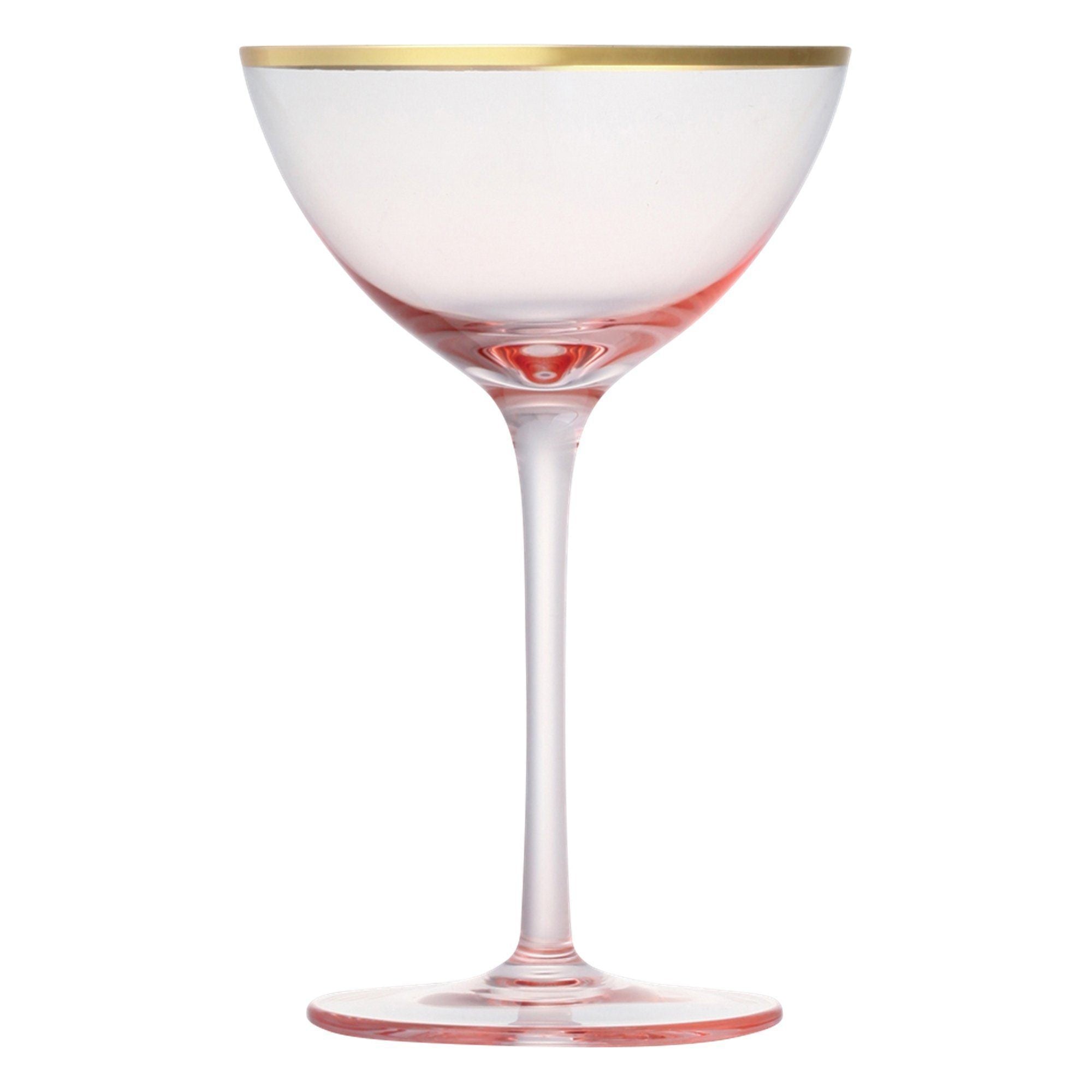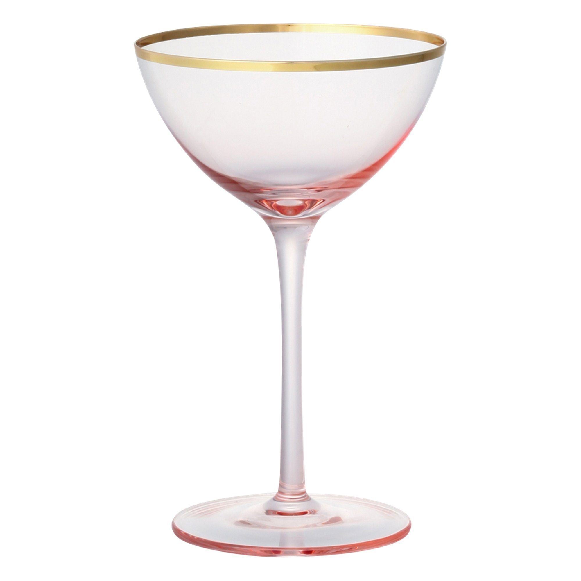 A fancy pink cocktail glass with a golden rim. The slender stem has made it more sophisticated. Add appetizer like olive to the glass and enjoy your drink elegantly. Ideal for serving cocktail at special occasions. “Cerisier ”Means cherry blossom in French.Specifications