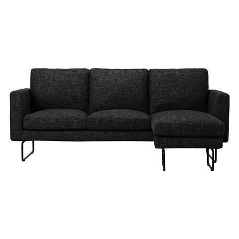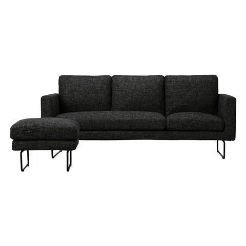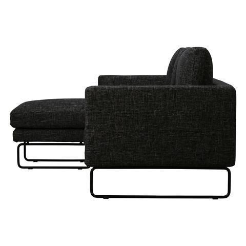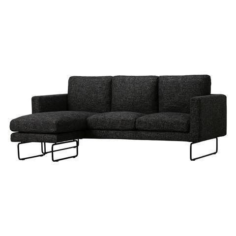 Contemporary, streamlined sofa that has cushions filled with feathers for extra softness, and metal legs that appear light and spacious. By alternating the combination of seat cushions, you can transform it into a sofa with an ottoman, or a chaise lounge sofa.