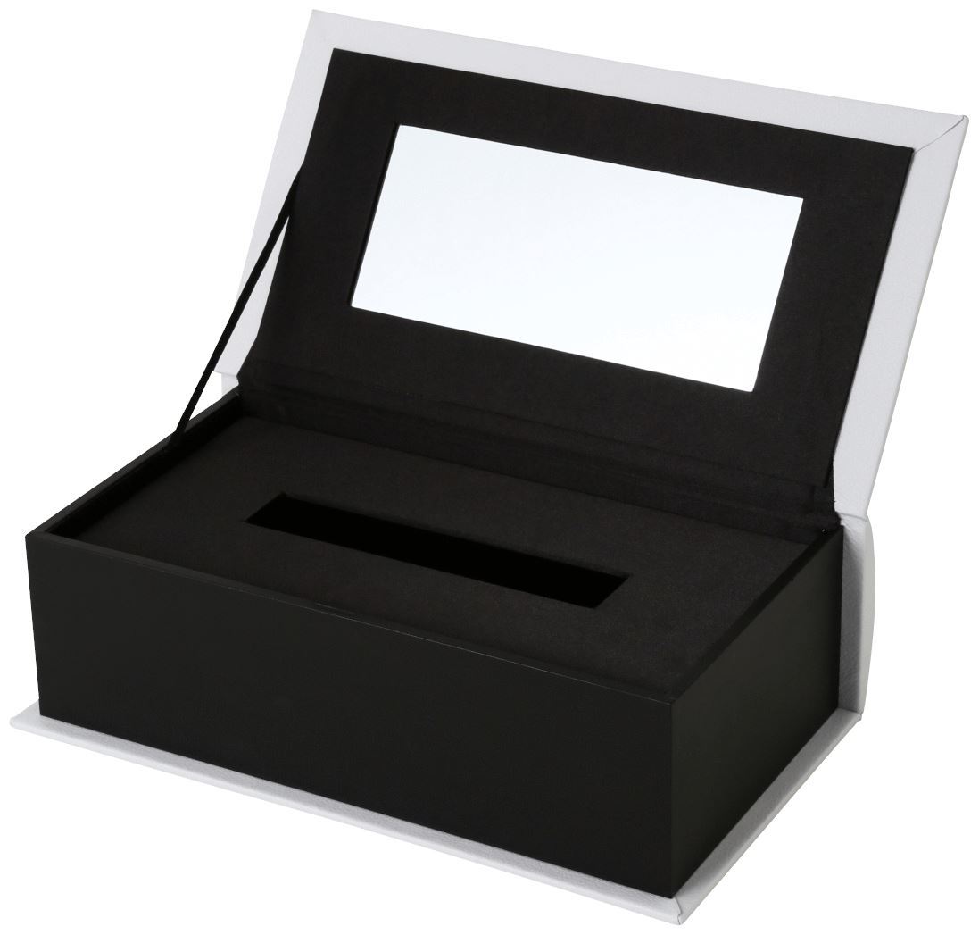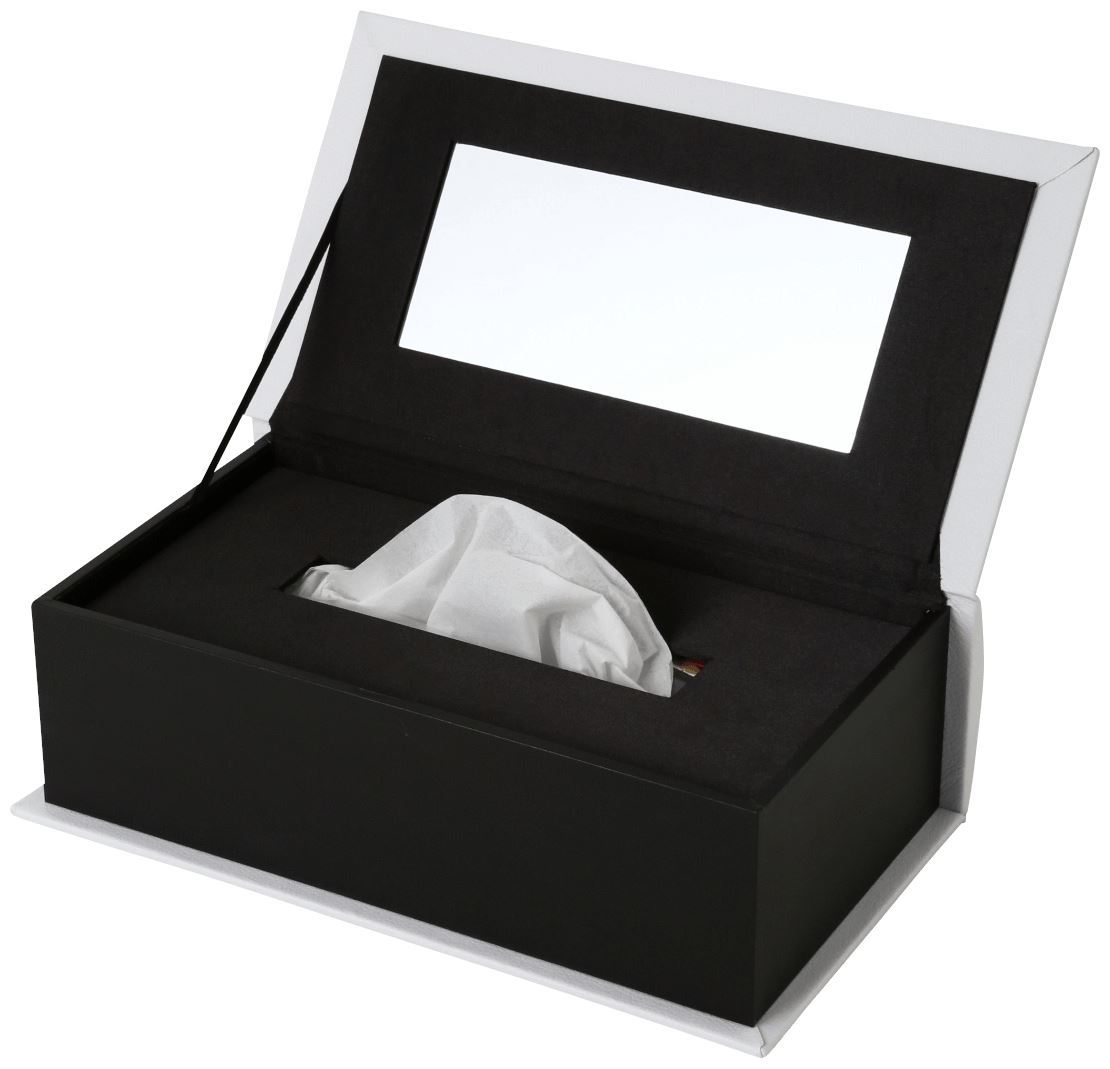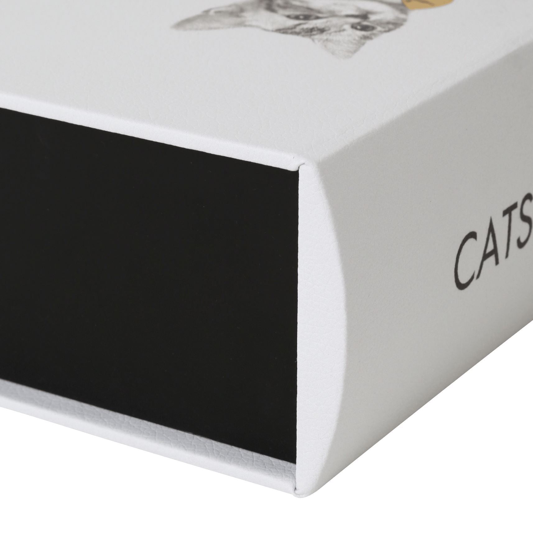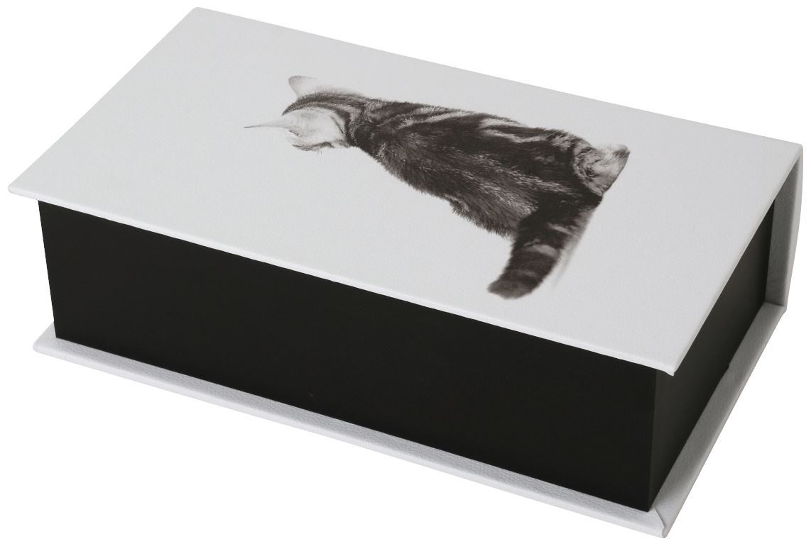 Book shaped tissue case with black cat wearing a gold bow. Check out backside of the box and find his pretty back silhouette with cute tail.Specifications