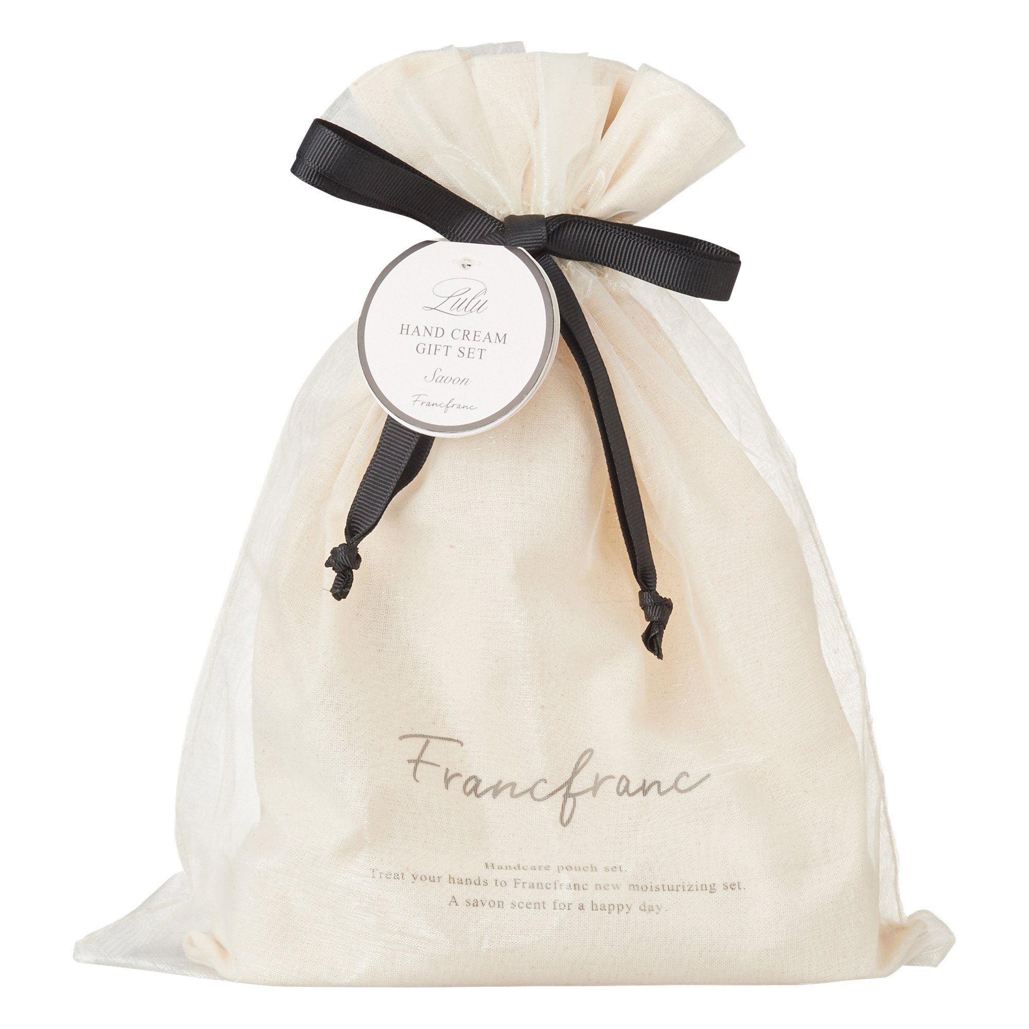 It is a gift set of hand cream, nail oil, and solid perfume with a lovely Francfranc drawstring dressed in organdy. It is a fragrance that is easily accepted by various generations.Specifications