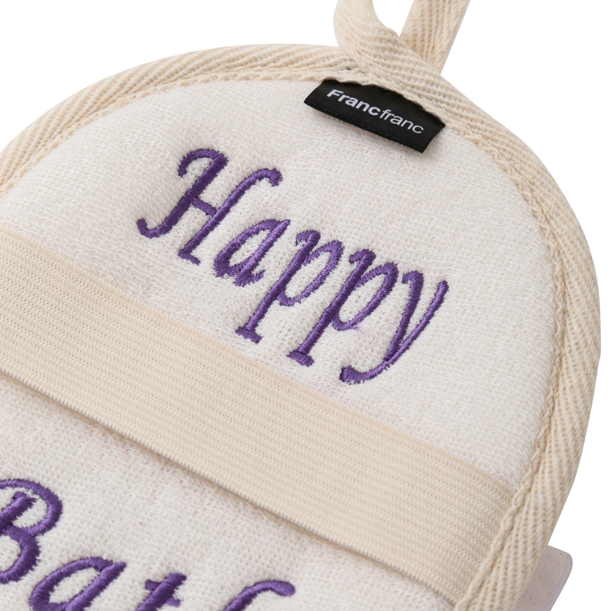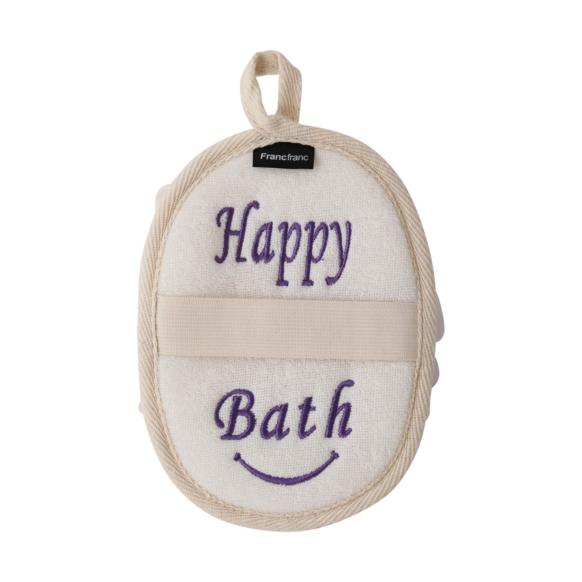 A lovely body wash pad with embroidery of 'Happy Bath' and smile mark. The soft mesh sponge creates a rich lather to help exfoliate your skin. Use it with your favorite soap or shower gel and enjoy a pleasant shower massage. Will make a great combination of gift with other body care products.Specifications