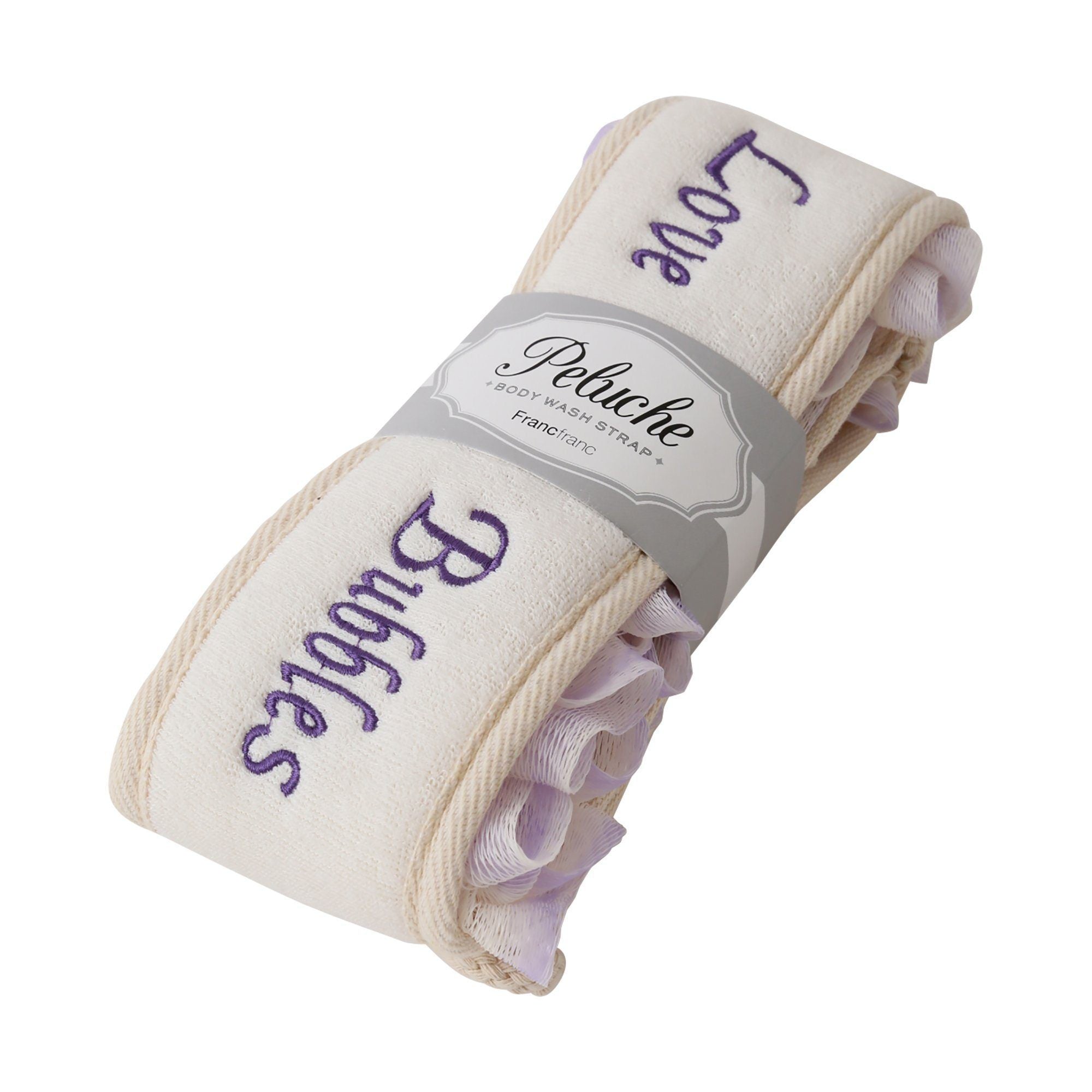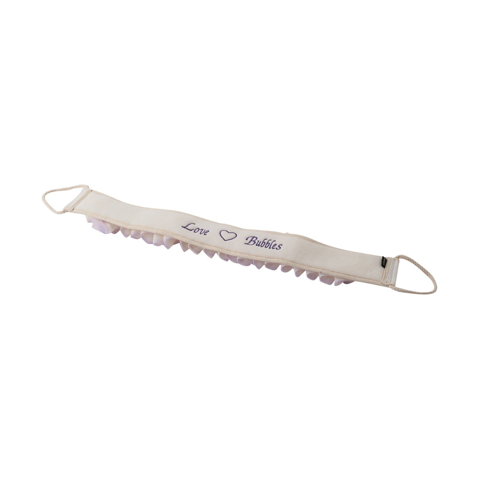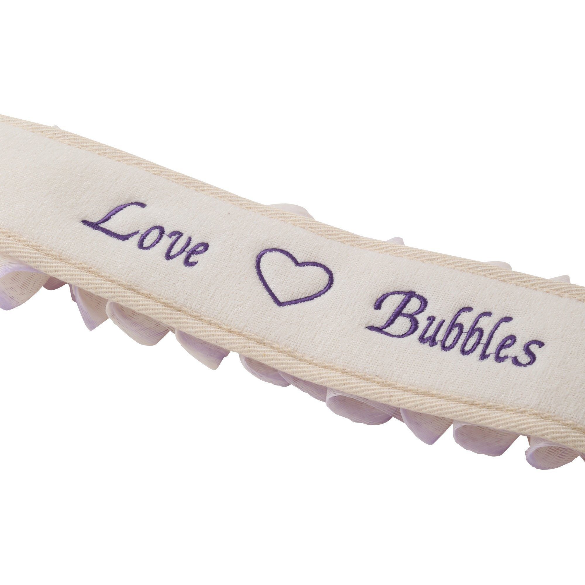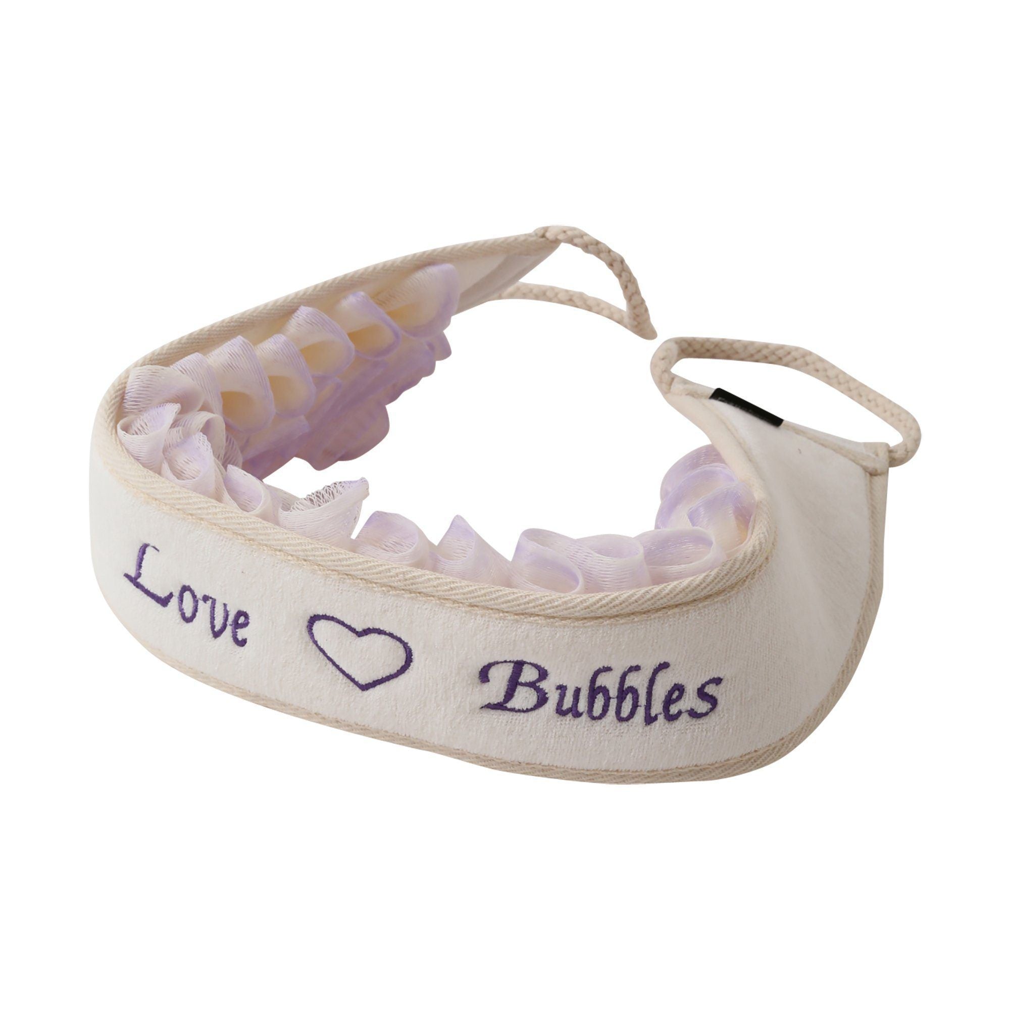 A lovely body wash pad with embroidery of 'Love Bubbles' and smile mark. The soft mesh sponge creates a rich lather to help exfoliate your skin. Use it with your favorite soap or shower gel and enjoy a pleasant shower massage. Will make a great combination of gift with other body care products.Specifications