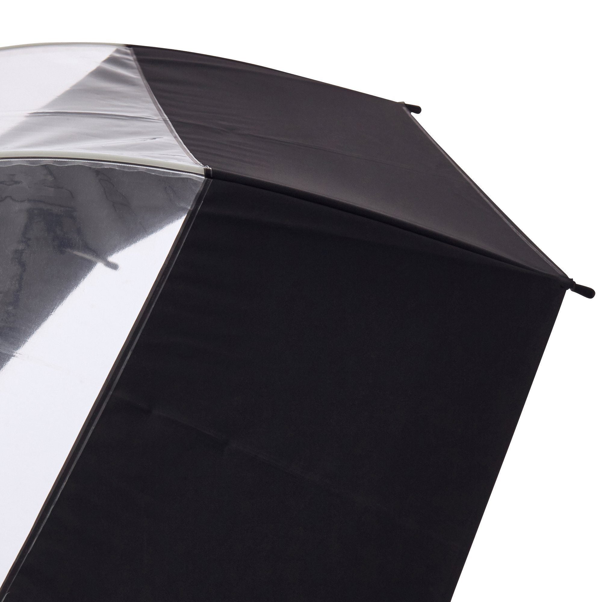 A stylish bi-colour umbrella with dome shape. It provides complete coverage of head and shoulders. Automatic design that can be opened with a touch of button.