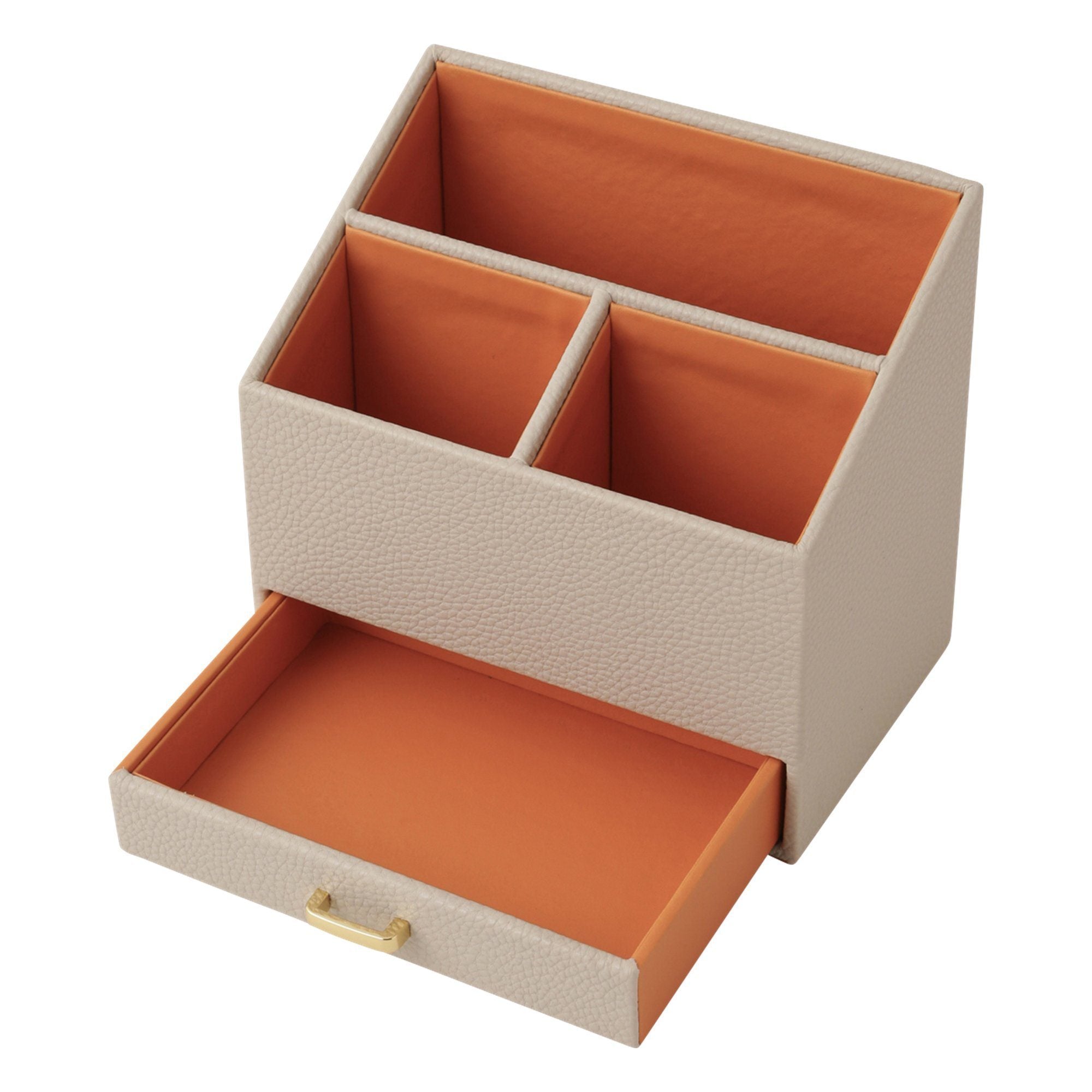 Pen stand that can hold A5 size notebook. Use bottom drawer for sticky notes, memo, stamp or clips.