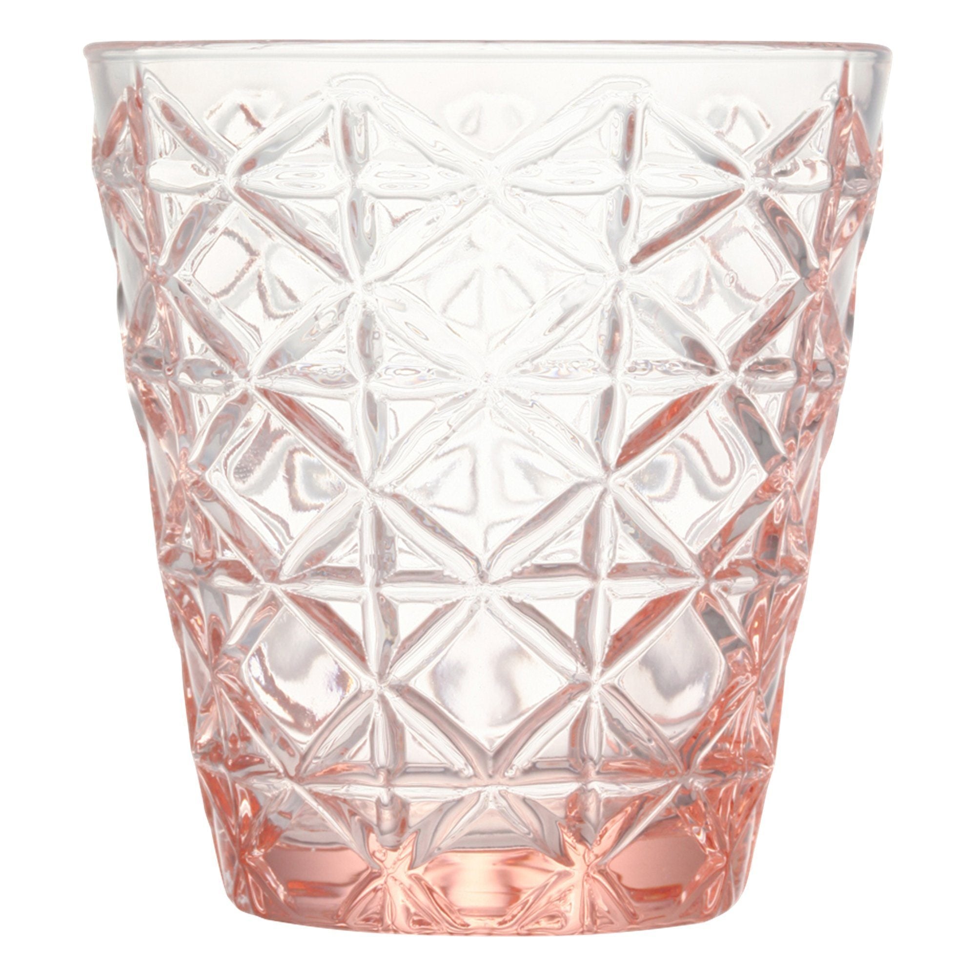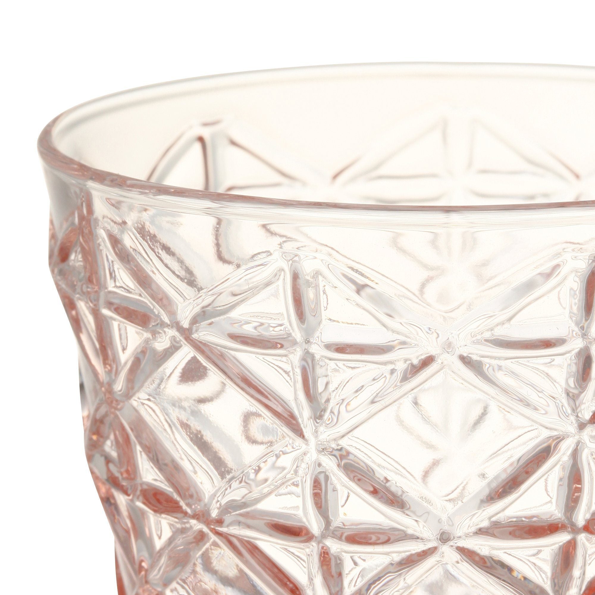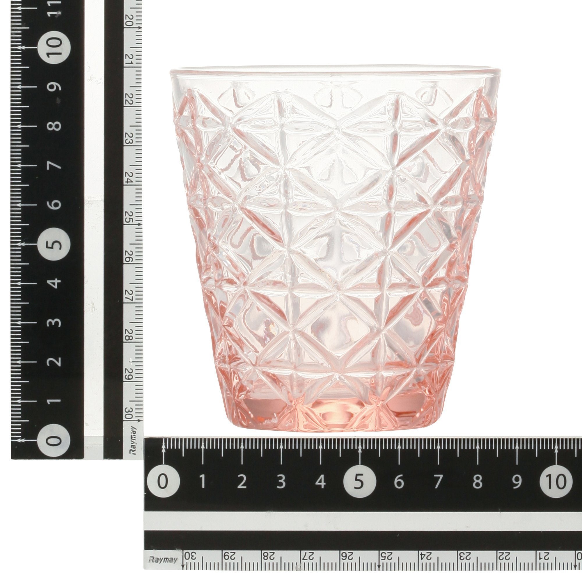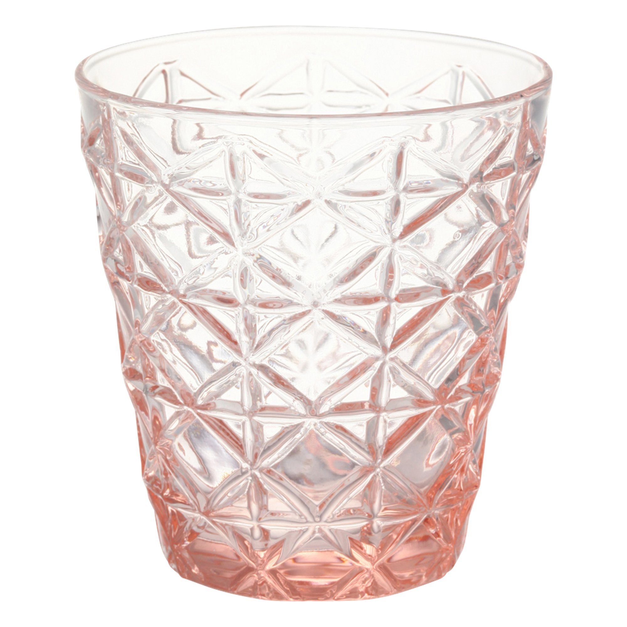 A fancy glass in pink. The stunning tile pattern has made it more elegant. Ideal for everyday use, keeping you in good mood for all day.Specifications