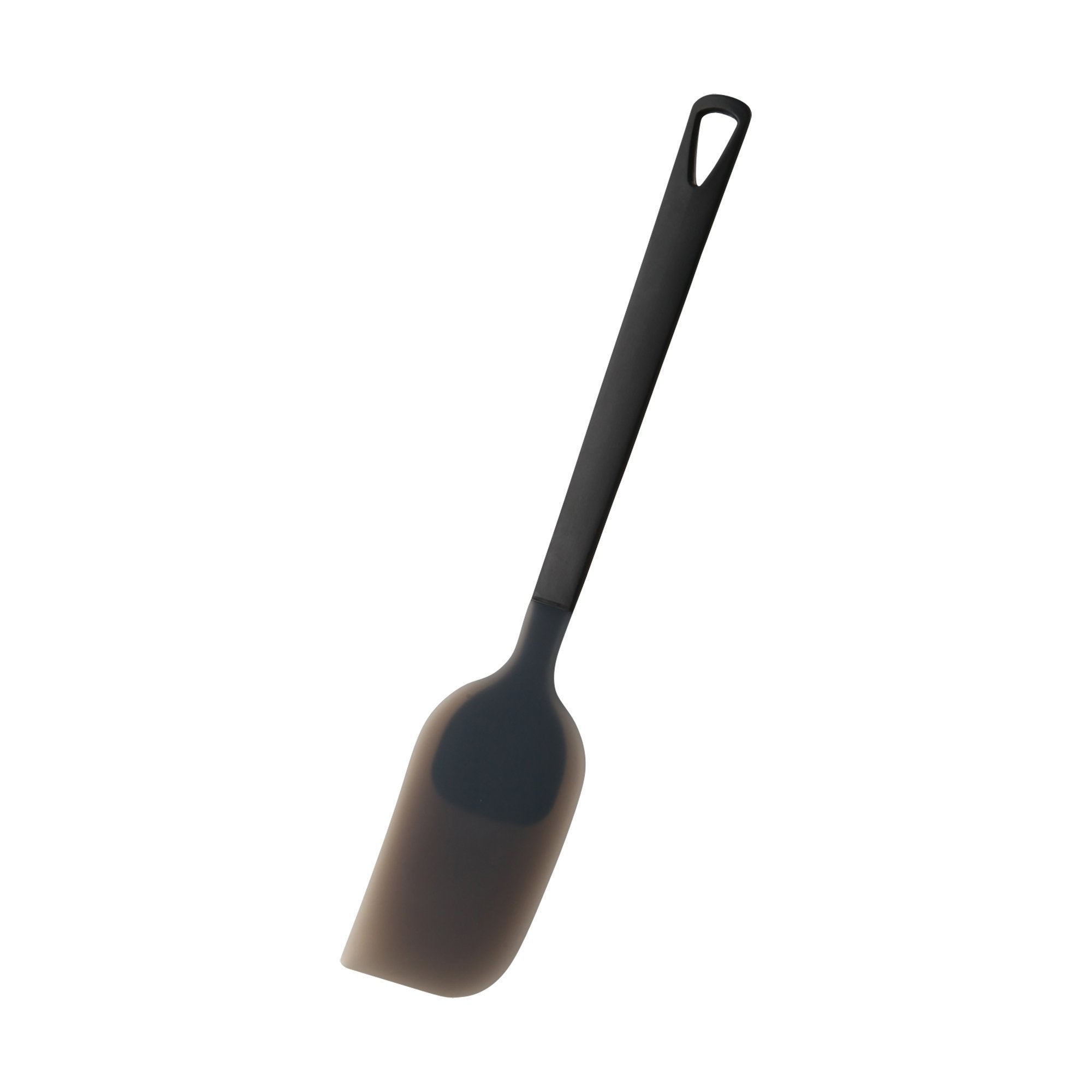 It is a spatula that can also be used for compliments. Curved to fit pots and bowls, it can be used like a scraper. With a moderate level of silicone, it scoops cleanly without leaving any fresh cream .