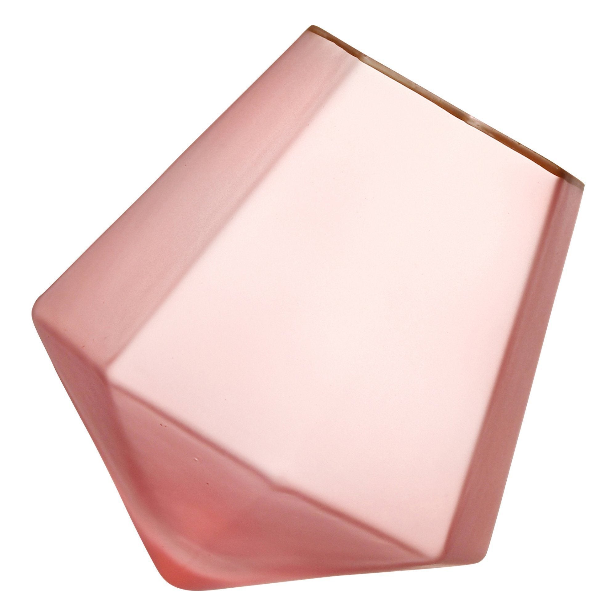 It is a playful slanted glass, but the diamond shape is easy to fit in your hand and can be used for various drinks.