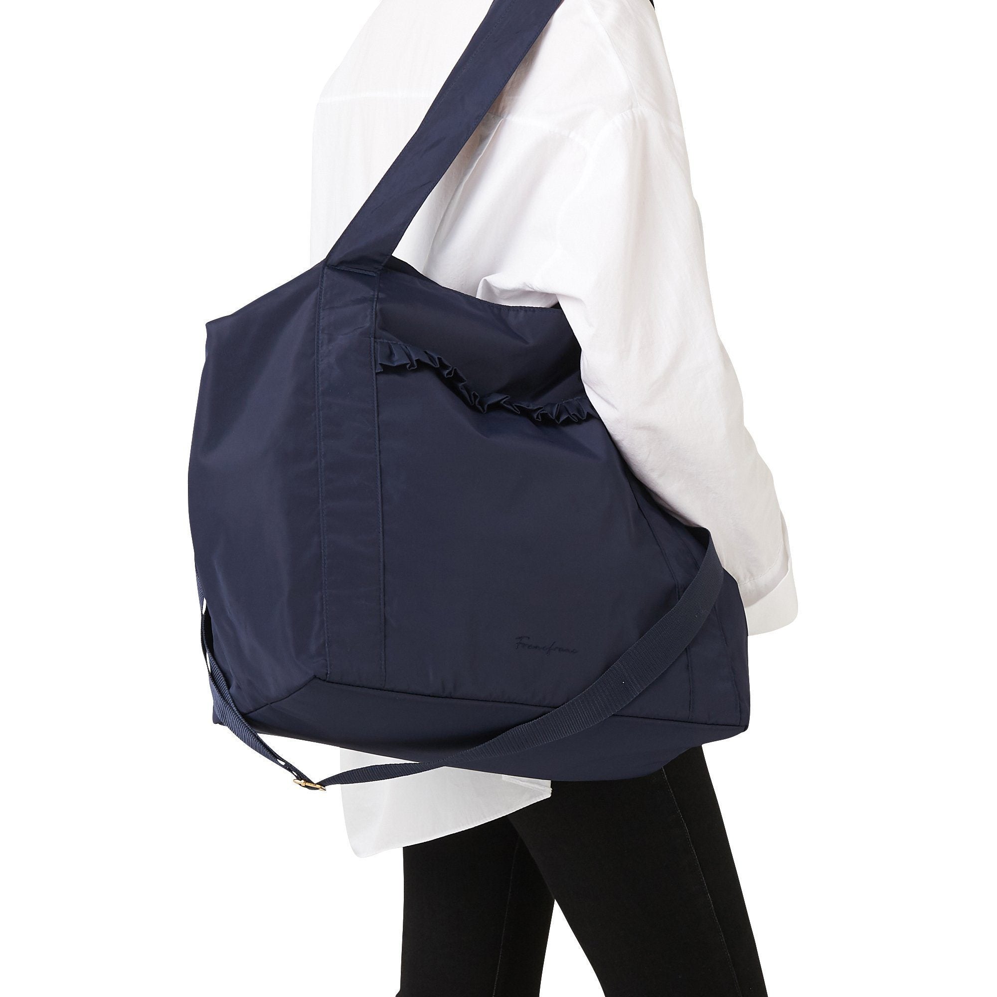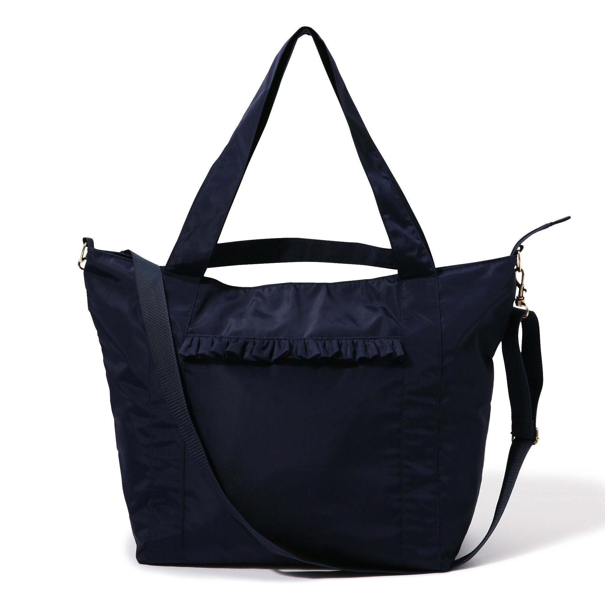 Subtle feminine items with frills, dots on the back fabric and embroidery of cursive logo.