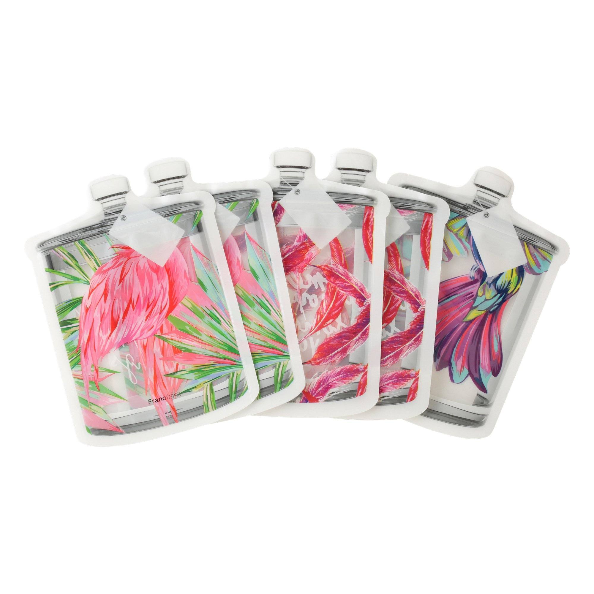 A zip bag (sealable storage bag) designed with colorful bird wings in the motif of a glass jar. The tag part of the design is a specification that can be filled in the contents and messages. Assortment of 3 to 4 patterns included. In addition to food, it is also very useful for sorting medicines, accessories, cosmetics and other small items.Specifications